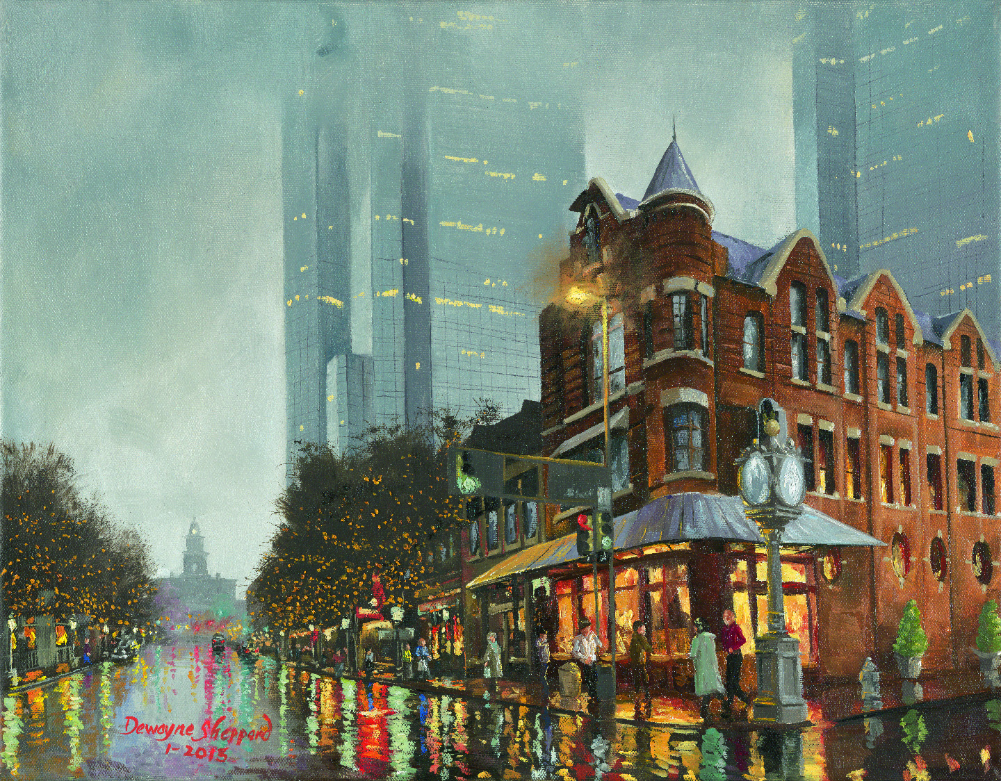 We are proud to announce the addition of the fine works of Dewayne Sheppard and his eclectic scenes of downtownFort Worth, Texas.